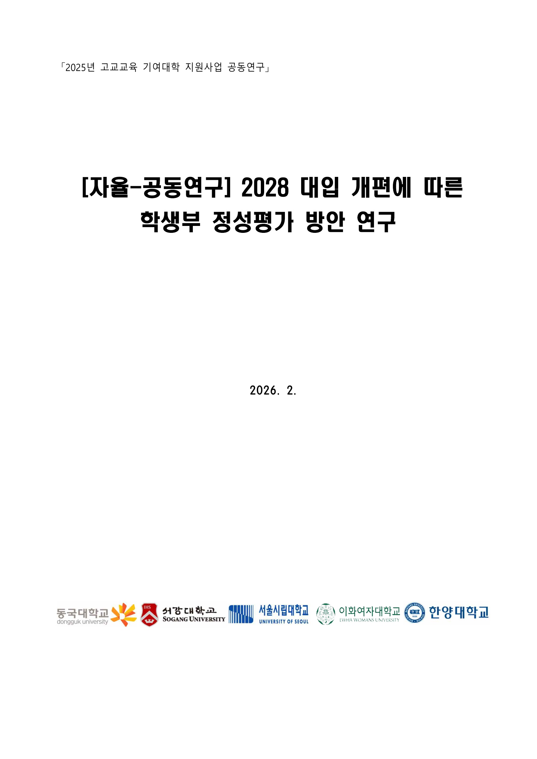 2025학년도 고교교육 기여대학 지원사업 자율-공동연구 보고서